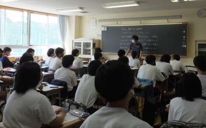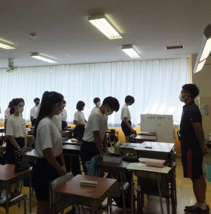 担任の思いをクラスの生徒に伝えます。3年生は横山中最後の体育祭予行です。