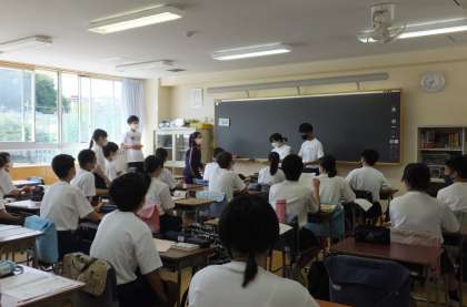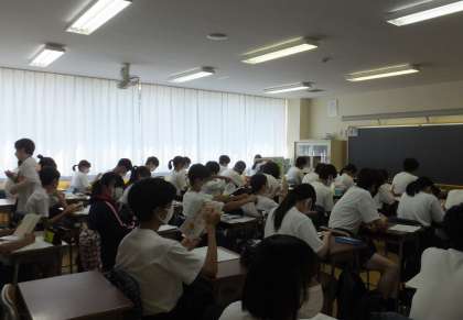 3年生の実行委員から一人一人に鉢巻が配布されています。朝読書もしっかり取組む3年生。