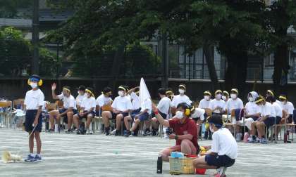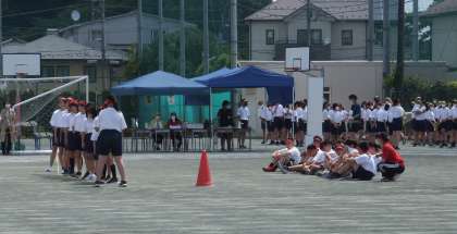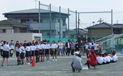 大縄跳びの様子です。陸上部の生徒はスターターで活躍しています。