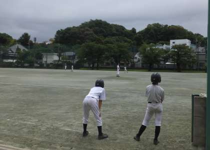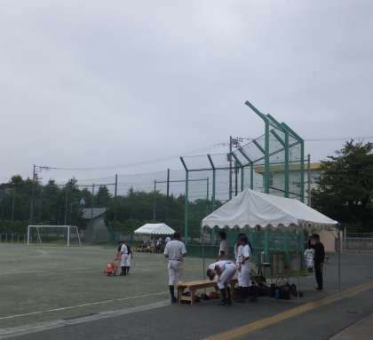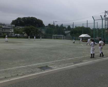 8月4日 雨上がりの校庭で椚田中と練習試合をしました。応援ありがとうございました。1試合目勝利の後の2試合目の様子です。