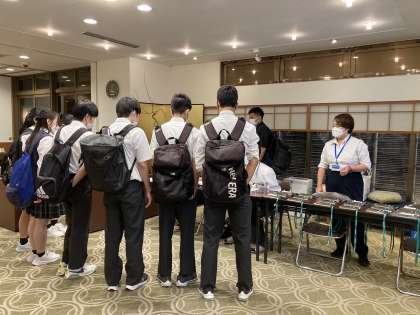 いってらっしゃい。貴重品と携帯電話を受け取り、班行動開始です。 朝の健康観察全員合格です。