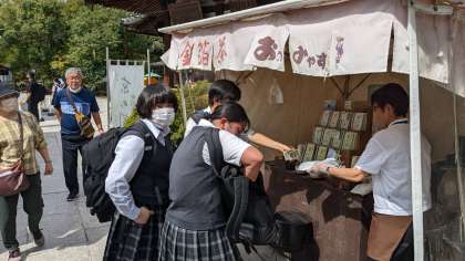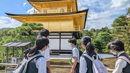 金閣寺の班行動の様子です。生徒みんな元気です。