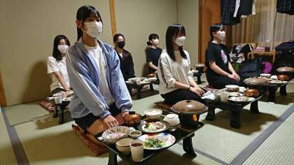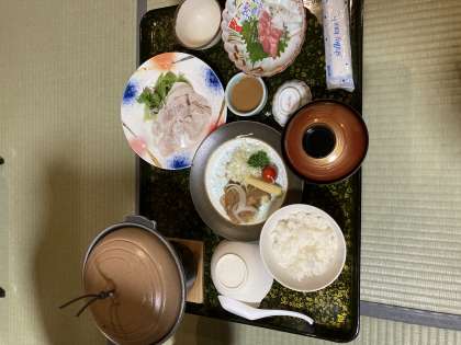 修学旅行 57 公開日 2022/10/03 更新日 2022/10/03 3年 今日の夕食です。衣笠鍋、お造り、冷しゃぶサラダ、豚の生姜焼き、おつゆ、ご飯です。 この姿勢の良さと匹敵するご馳走です。 いいね(0)
