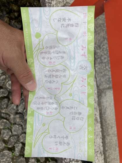 今日の下鴨神社水おみくじは大吉です。 横山中学に幸せありでしょうか。