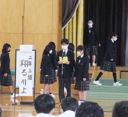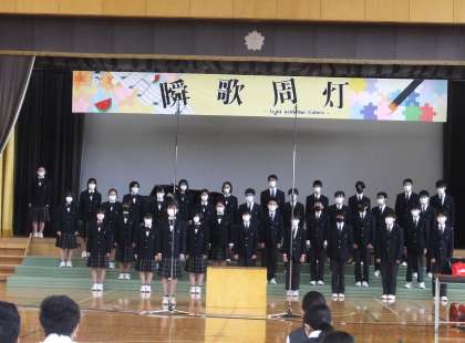 学年合唱では、声変わりしたパートの声が体育館に響き感動しました。