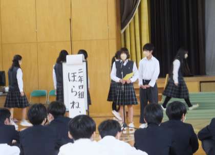 2組、4組の発表です。めくりプログラムも書道部の手作りです。