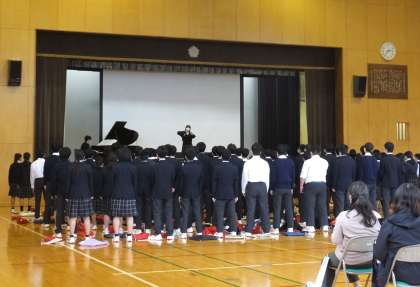 10月14日(金)進路説明会 公開日 2022/10/14 更新日 2022/10/14 3年 3年生の保護者の皆様 今日は進路説明会に御来校ありがとうございました。 サプライズで会の前に学年合唱を披露しました。今日は、音楽の歌のテストがあるクラスもあり、歌声が校舎内に響き渡っていました。 感動して涙ぐむ3年生の先生方の姿もありました。 卒業式が今から楽しみです。その前の進路選択も学年全員で切り開いていくことでしょう。 がんばれ!三年生! いいね(0)