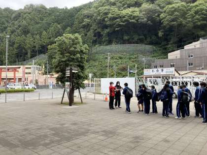 高尾山口駅前でチェックを受け、京王線に乗車します。