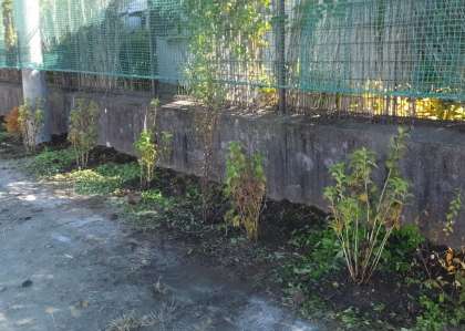 今日は、技術科の授業で1年生1クラスが、ドウダンツツジとアジサイ合計10本を植樹しました。