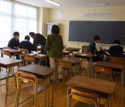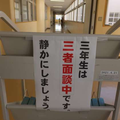 2年生の放課後補充教室の様子です。3年生は面談中なので表示を廊下に掲示しています。3年生の廊下の様子です。