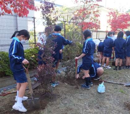 樹木も生徒たちも日々の成長が楽しみです。アベリアエドワードゴーチャを植えています。