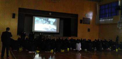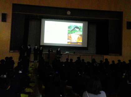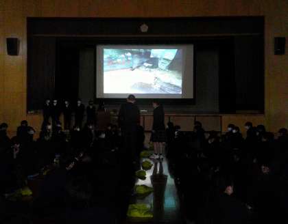 2月3日の都内校外学習の学年発表会です。教育長 安間 英潮 先生が参観していただきました。
