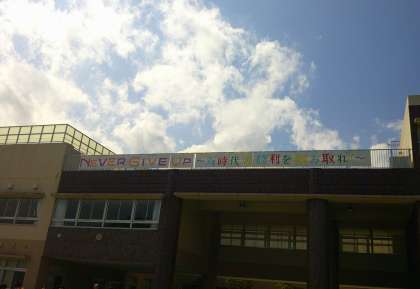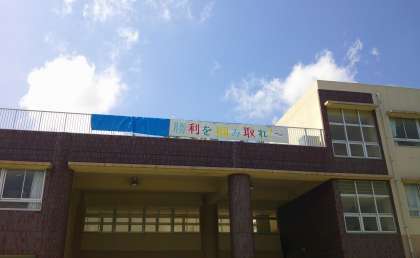 スローガンを掲示してみました。生徒会の生徒たちの作品です。