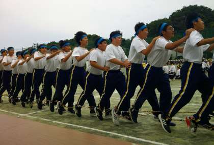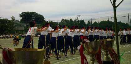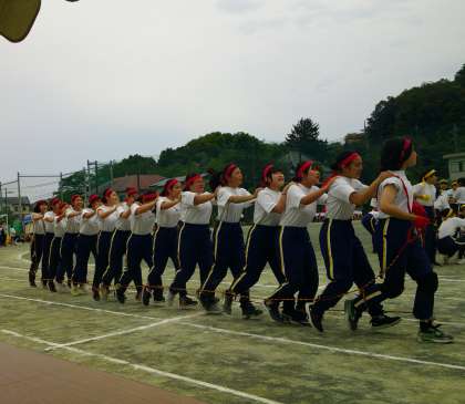 気持ち揃えて進みます。バトンパスは、タスキをつなげます。
