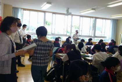 友達の発表後にクラス全体で拍手をする1年生。授業中でも仲の良さ、友達への優しさや認め合う心を感じ嬉しい気持ちになりました。