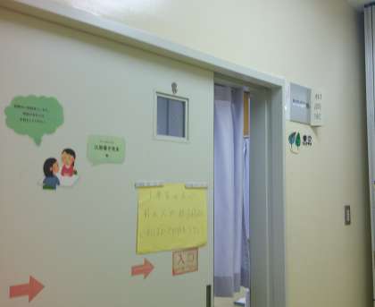 スクールカウンセラーとの全員面談が1年生対象に行われています。廊下で待機し、相談室で行われます。全員面談の会場は、ぬいぐるみがお迎えしてくれます。