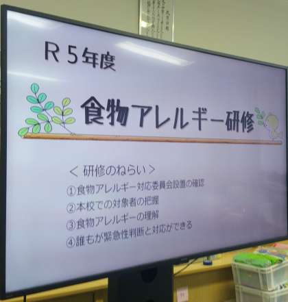 職員会議の後、養護教諭を講師に教員対象のアレルギー研修を行いました。