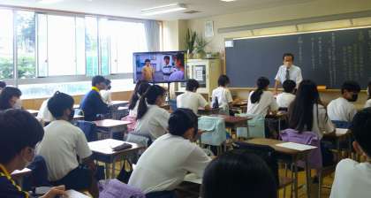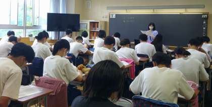 全校朝礼で校長の講話を聴き、1時間目は生命尊重をテーマに道徳の授業を全校で行いました。3年生は、「いのちの花プロジェクト」の教材で授業を行いました。2018年度に殺処分された犬7,687、猫30,757このうち保健所に持参されたものは18,2%