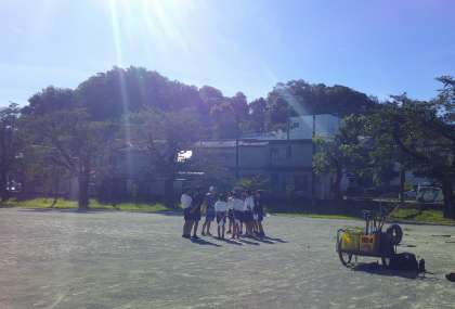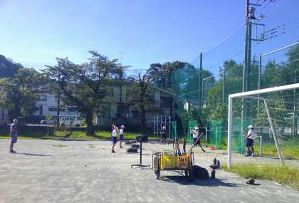 朝日を浴びて輝く野球部員たちの様子です。一生懸命に練習する姿はとても美しいです。
