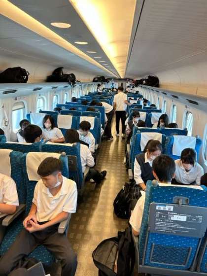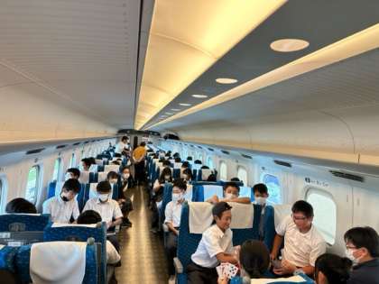 新幹線車内で楽しく過ごしています。