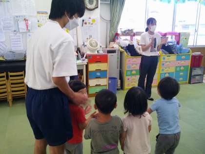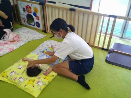 職場体験 5 公開日 2023/09/14 更新日 2023/09/14 2年 白百合ベビーホームでは、年齢別クラスに分かれて様々なクラスを体験させていただいています。2歳児のダンス、0歳児の寝かしつけの様子です。 いいね(0)