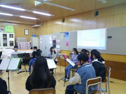 音楽の授業はリズムで自己紹介をしました。