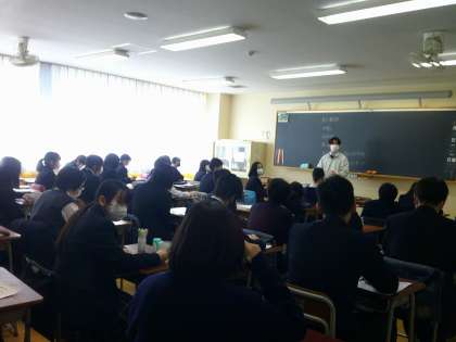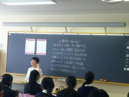 自己紹介やクラス目標などを考える学活の時間です。廊下で生徒が大きな声で「校長先生、おはようございます」とあいさつしてくれました。誇れる上級生の姿です。1年生の生徒たちにもあいさつをして広めていきましょう。