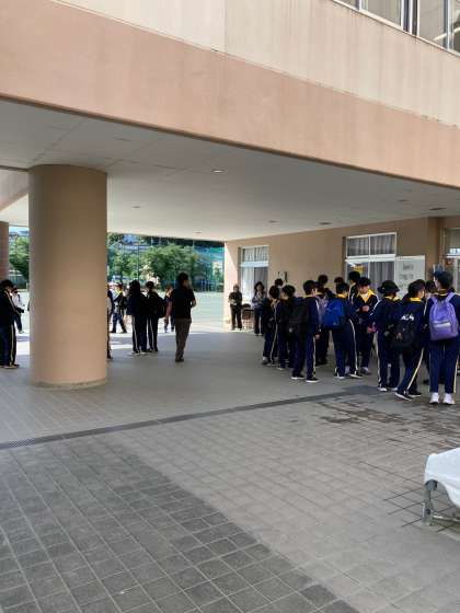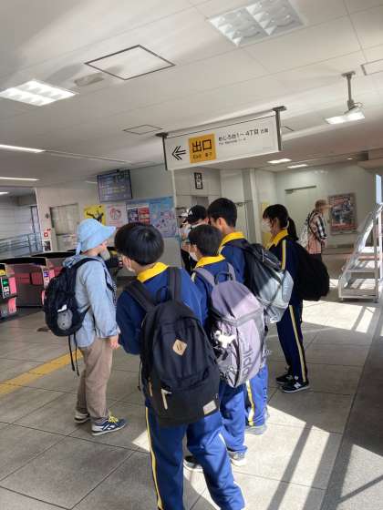 班長さんが人数と欠席者を報告しデジタルカメラと救急セットを受け取り班ごとにめじろ台駅へ