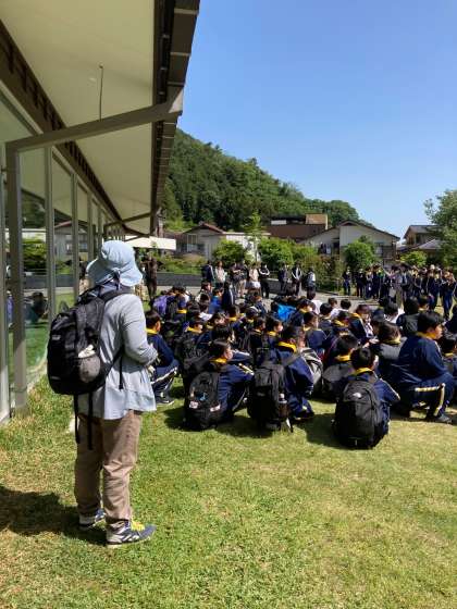 599ミュージアムで動画を視聴し、学生ボランティアさん8名の紹介をしました140名の出席です