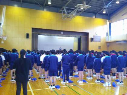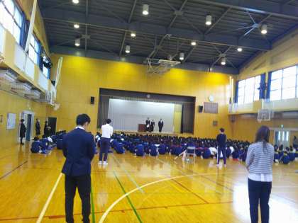 本日朝礼では校長先生のお話と実習生の紹介がありました。