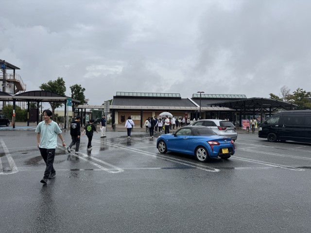 双葉のサービスエリアで休憩を取りました。あいにくの雨で、山登りは中止になります。