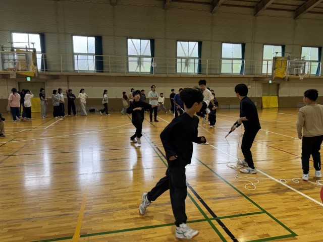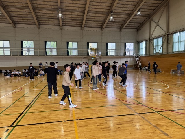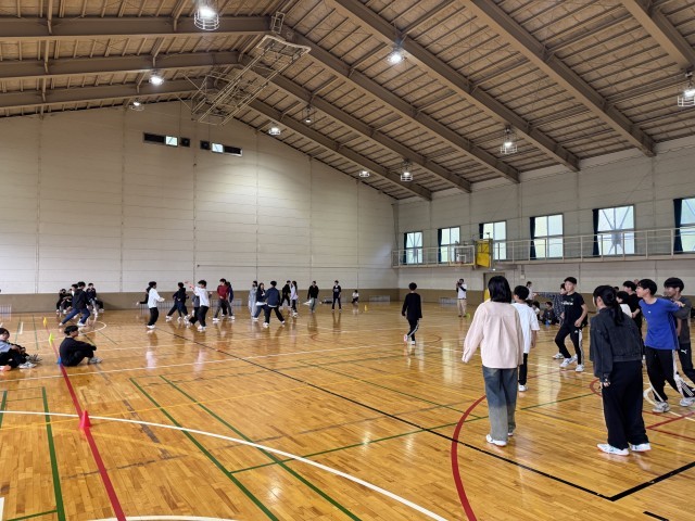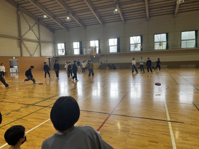 フリスビードッヂを行いましらた。3組が勝ちました。