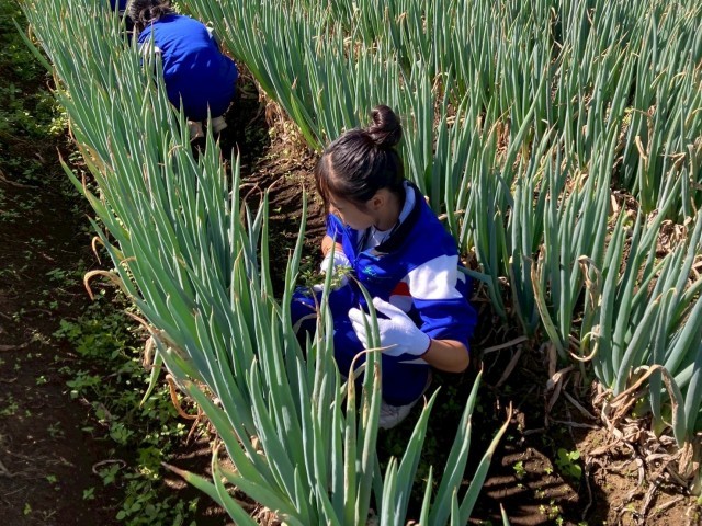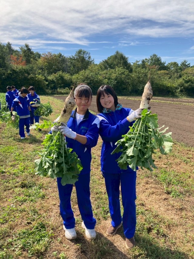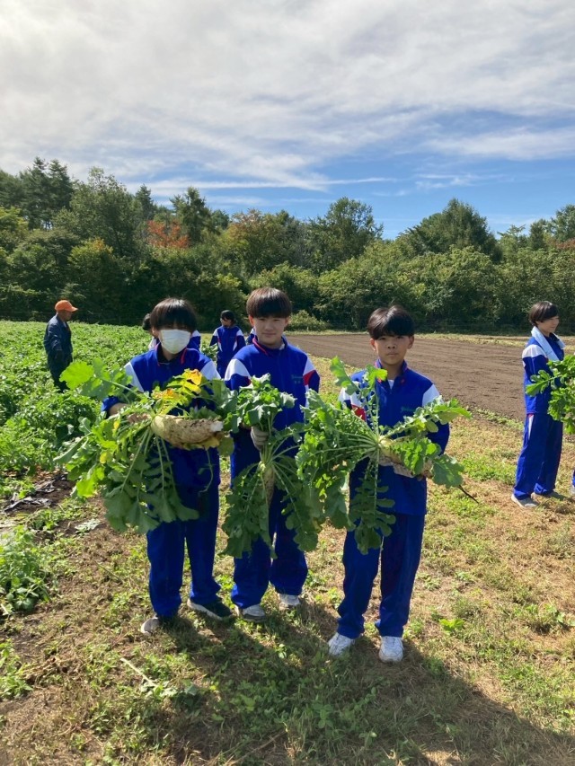 野菜の収穫や草むしりをしました。野菜の大きさにビックリしていました。