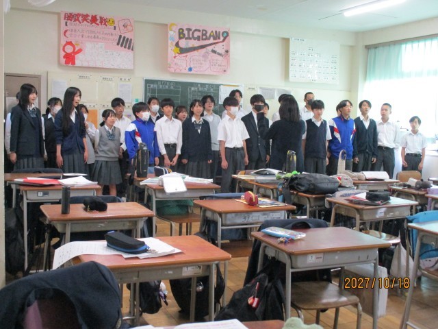 学年練習の時より各クラス、声量が増し、きれいなハーモニーになってきました。