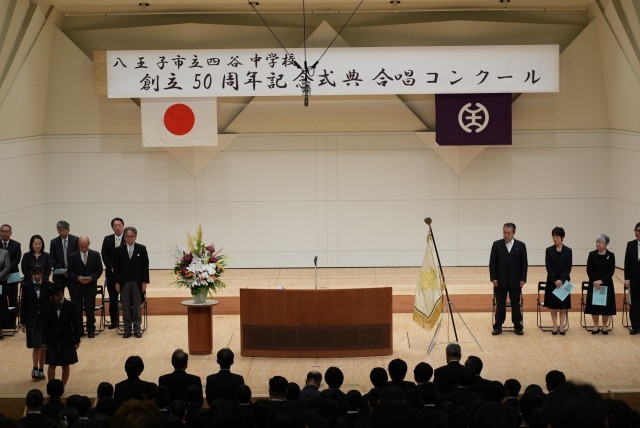 本日、八王子市立四谷中学校創立50周年記念式典が盛大に行われました。最後に歌った校歌は来賓の方から素晴らしかったというお褒めの言葉をいただきました。次の50年の出発の日にも今日はなりました。