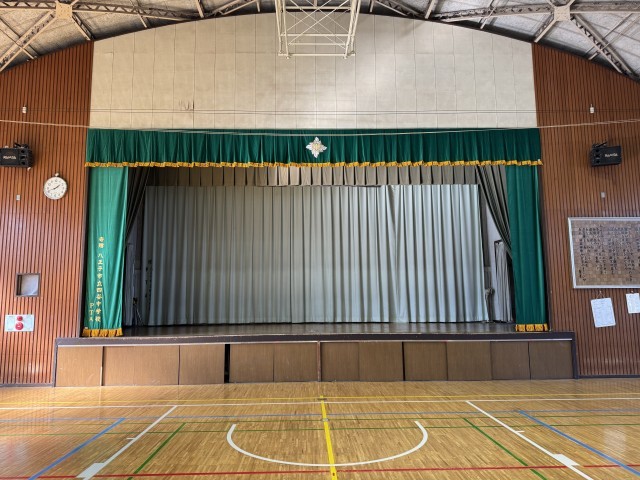 PTAより体育館の緞帳が寄贈されました。ありがとうございます。大切に使用していきます。