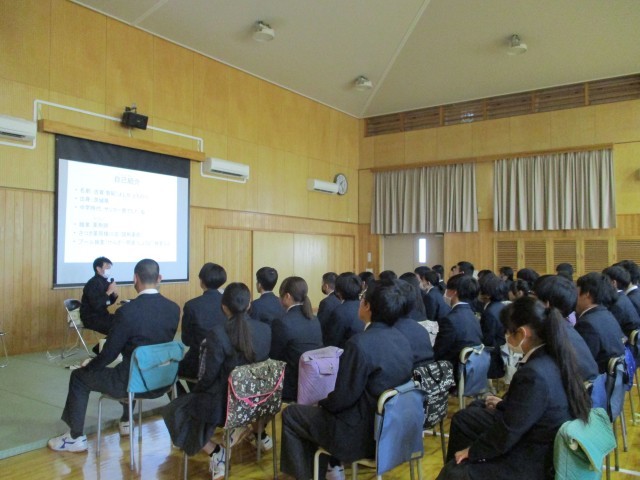 2学年は5校時武道館で学校薬剤師の方を講師にお招きして「薬物乱用防止教室」を行いました。