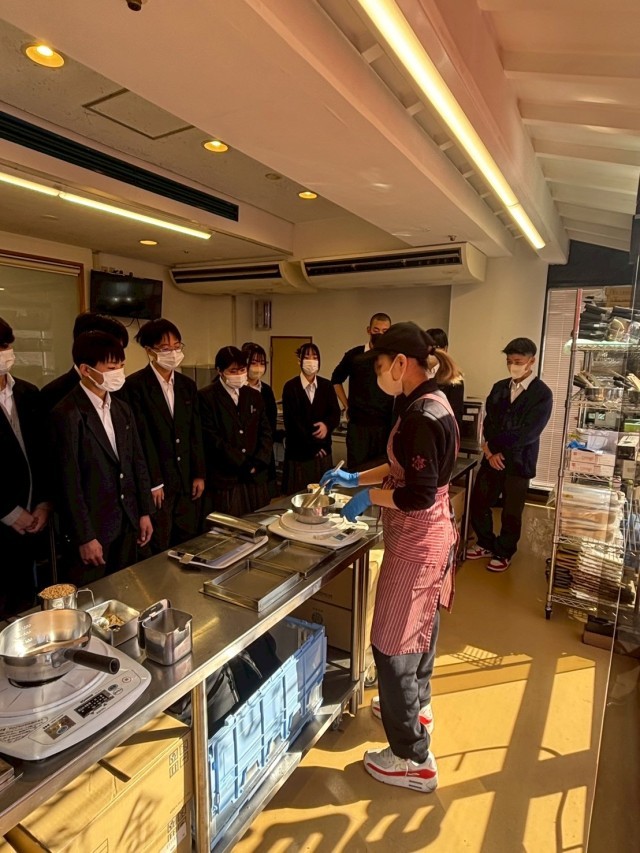 常盤堂雷おこし本舗に到着して、雷おこしの体験学習が始まりました。