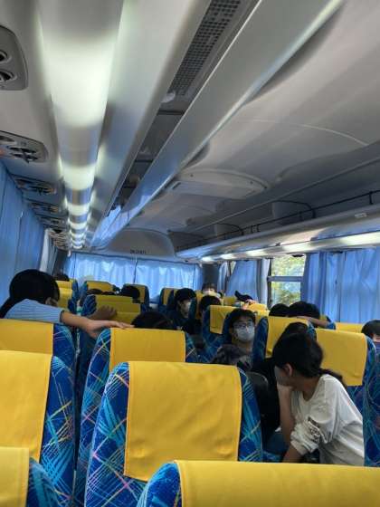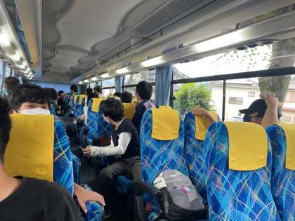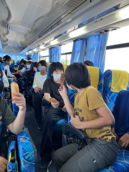 バスの中では、レクをしたり、話をして時間を過ごしています。