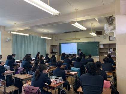 自己紹介は、レクリエーションを通じて、緊張をほぐしてからの自己紹介でした。1時間の中で、レクリエーションから切りかえて、聞く姿勢を作るメリハリがどのクラスも見られました。