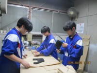 丸茂塗装工業での職場体験の様子です。集中して、洗浄と塗装、マスキングの作業に取り...