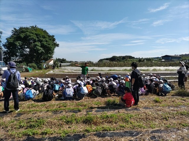 中西ファームに着きました。中西ファームの方から、農地や野菜のお話をしてもらいました。
