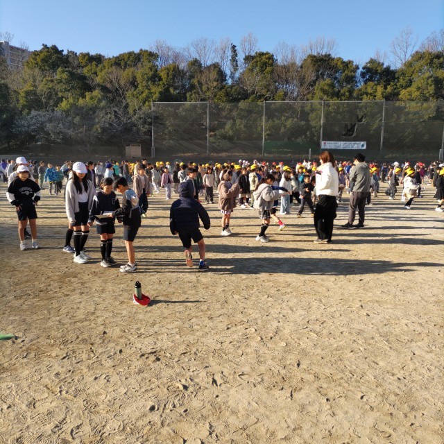 全校集会「ピンポン玉送り」をクラス対抗でしました。クラスで協力してピンポン玉を運びました。1位は4年2組でした。みんな楽しんでいました。