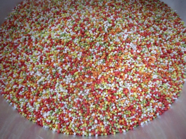 満開の桜の花びらを5色のあられで表現しました。