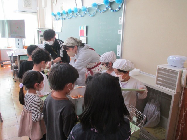 昨日、給食の準備や片付けのお話と、空の食器を使ってシュミレーションをしていましたので、