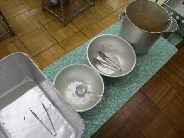 1年2組は、なんと初日から、おかわりして食缶が空っぽになりました。