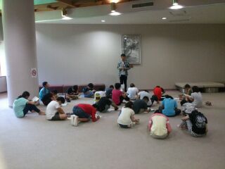 行動班の班長が集まって、3日目の行程の確認をしています。