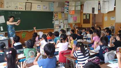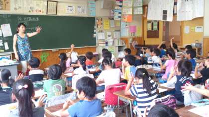 2年生が算数の学習をしています。ひき算の筆算の学習です。昨日の復習をしてから、今日の学習に入っています。