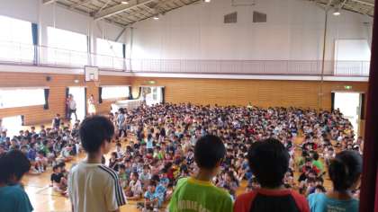 今朝は、児童集会がありました。今日はゲーム集会をしました。幕の後ろに隠れた先生の声。何先生の声か?当てっこゲームでした。楽しい朝のひとときになりました。