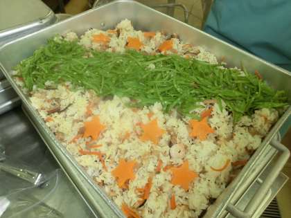 ちらしずしは、さやえんどうと星形にんじんで天の川をイメージして